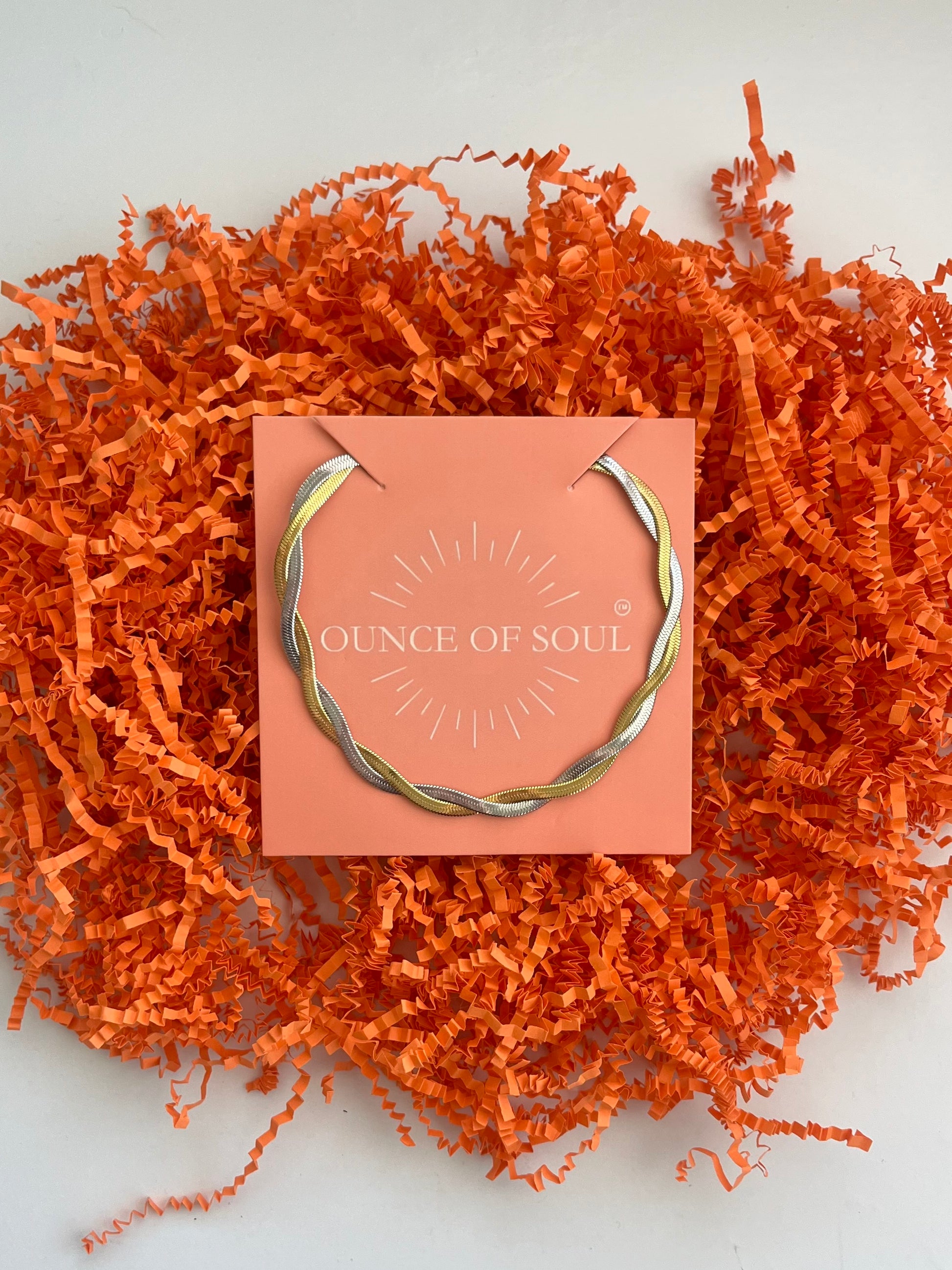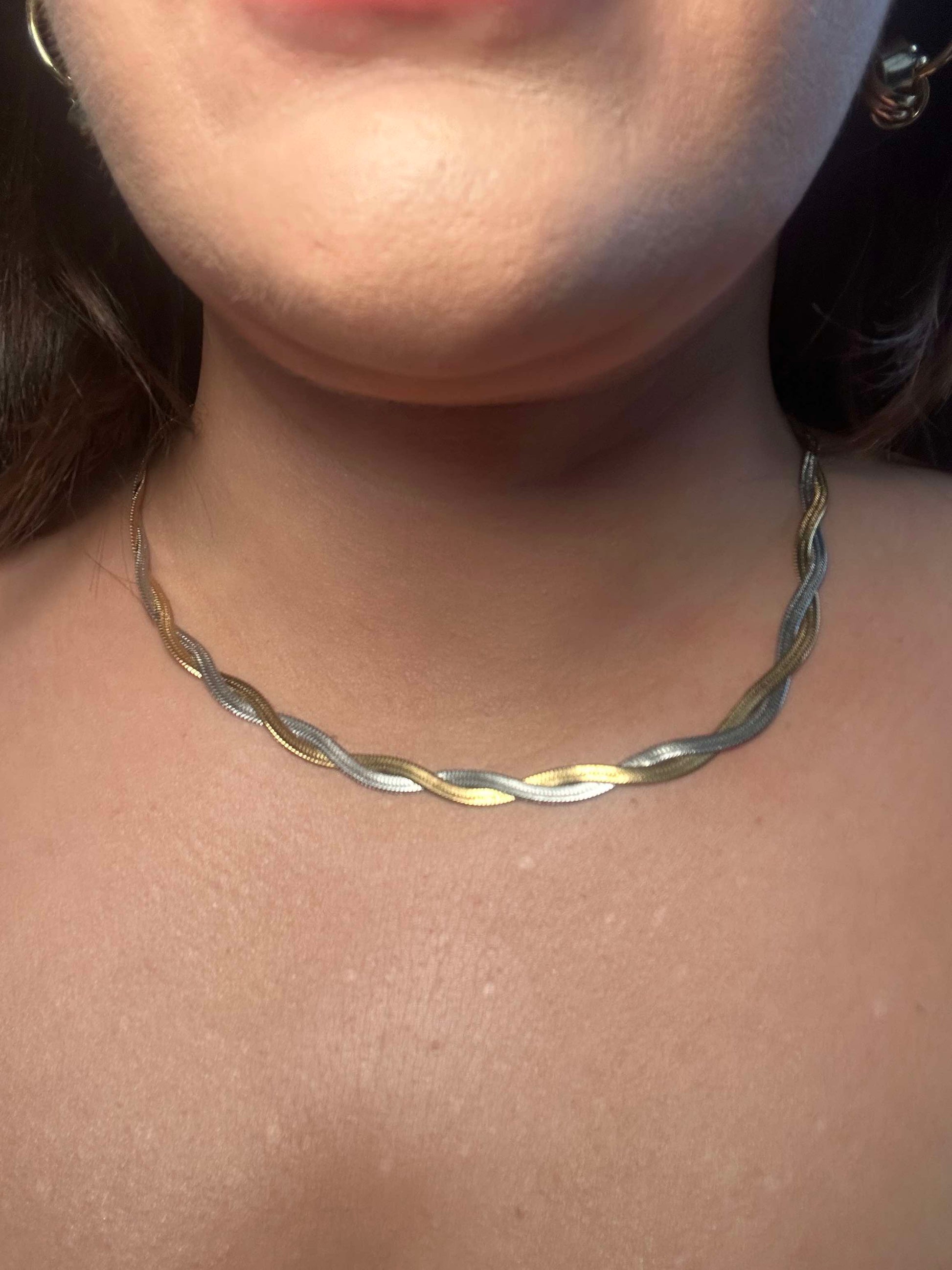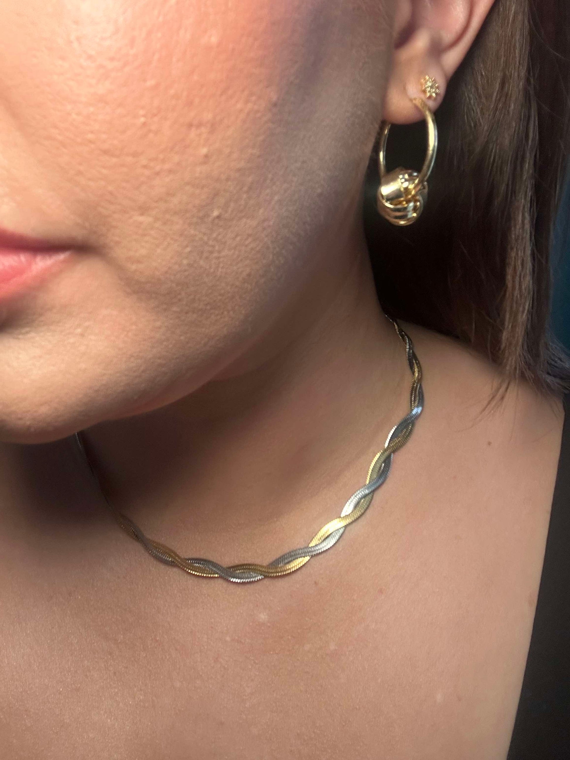 Add a touch of timeless elegance to your jewelry collection with the Braided Elegance Necklace. Featuring a stunning interplay of silver and gold tones, this mixed-metal design symbolizes unity and balance. Its braided texture adds depth and sophistication, making it the perfect accessory for any outfit.